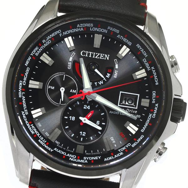 | 商品の特徴 | CITIZEN(シチズン) CITIZEN AT9065-00E エコドライブ ダブル。楽天市場】シチズン AT9065-00E エコドライブ ダブルダイレクト。シチズン ダブルダイレクトフライト AT9065-00E 黒文字盤 メンズ時計。【現状】1)機能的に健全な状態で良好に稼働中(但し、将来の動作保証はできかねます)2)時計本体に目立つような傷/ダメージはほとんど認められず、中古品としては美品の方です。正規革ベルトは、変色/ヒビ/使用によるクセ等それなりの使用感があります(万一見落とし/評価間違いがある場合は、ご容赦願います)【特徴】1)裏蓋に\"LimitedEdition\"の刻印がある限定モデル(ネット販売品)2)多機能インダイヤルをブラック文字盤上に備えた高級感とステンレス製のズッシリとした存在感を合わせ持つ秀逸な時計3)世界各都市の時刻に瞬時に時間を合わせる「ダイレクトフライト(ワールドタイム)機能」を、ホームタイムとローカルタイムのダブルで搭載(2カ国の時刻を同時表示可能)4)衝撃や磁気による針ズレを防ぐPerfex搭載5)他の機能として、パーペチュアルカレンダー、アラーム、デュアルタイム、電波時計、エコドライブ、パワーセーブ機能等を搭載した高性能モデル【仕様】 ・表示機能:ホームタイム(時/分/秒/24時間)、ローカルタイム(時/分)、カレンダー(日/曜日)、サマータイム、アラーム、充電量、電波受信・機種:AT9065-00E・キャリバー:H820 ソーラー駆動クオーツ/日中米欧電波受信・ケース/ベゼル:ステンレス(ベゼル:ブラックめっき)・文字盤:ブラック・風防:サファイアクリスタル・ベルト:正規革ベルト(中古、ブラック)、正規Dバックル(中古、シルバー)付・4時位置ボタン:強制受信、受信結果の確認、充電量の確認他・ケース横幅(リュウズ含めて):約48.4mm ケース厚:約12.1mm・防水につきましては、リュウズ、ボタン部等のパッキン劣化で性能低下が発生していると思われます・発売時価格:161,784円(税込)【付属品】・取扱説明書・保証書(無記入)・Citizen化粧箱【御購入/発送】 送料はこちらで負担します。楽天市場】シチズン AT9065-00E エコドライブ ダブルダイレクト。風防ガラス/文字盤も勿論きれいです。Paul Smith ポールスミス 電波 腕時計。カシオ PRO TREK PRT-B50。「佐川急便/日本郵便の宅急便」で発送 | ||